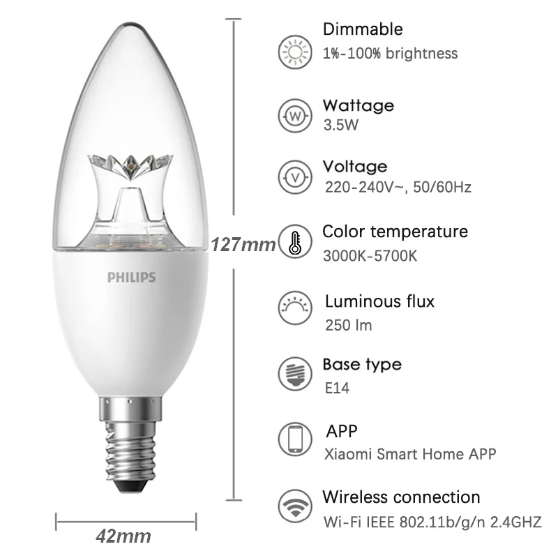 Best Xiaomi Mijia Smart LED Candle Light Bulb WiFi E14 Dimmable PHILIPS Zhirui Lamp APP control Mi Smart