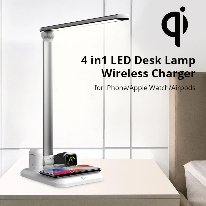 Trend 4 in1 LED Desk Lamp Wireless Charger for iPhone Xs/Apple Watch/Airpods/Xr/8plus Touch On/off Switch