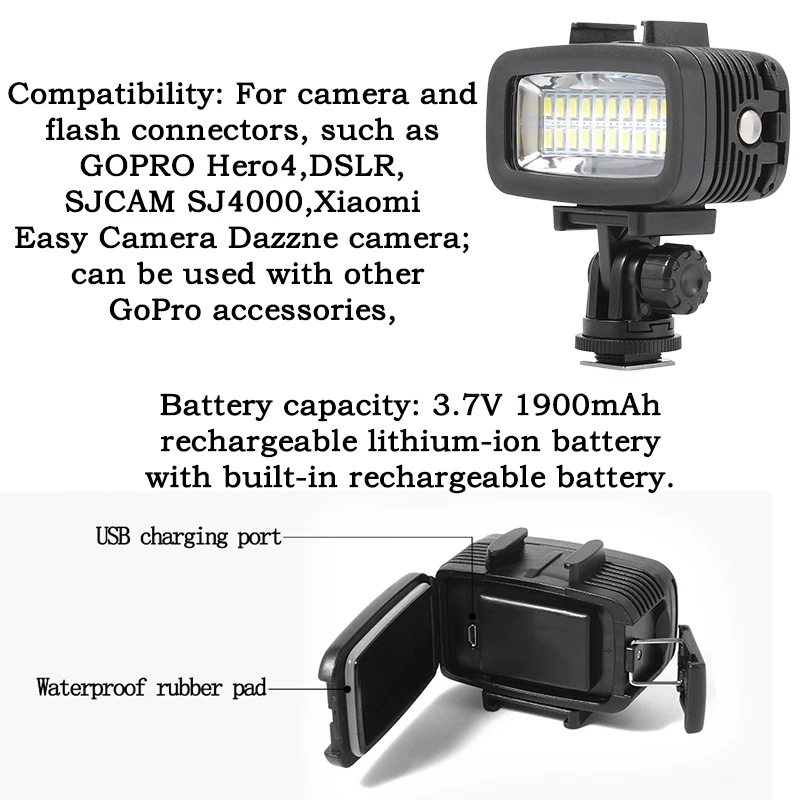 Gopro light 40m Underwater Waterproof Diving Camera Light Lamp with High Brightness LEDs for GoPro Xiao Yi SJCAM Action Camera :Click Here