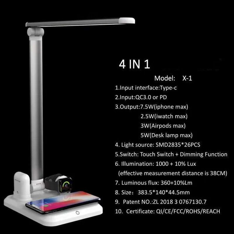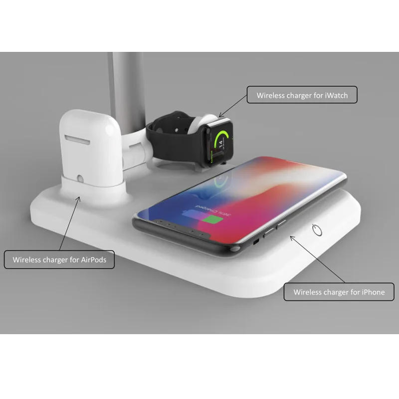 Best Price 4 in 1 Smart LED Table Lamp Qi Wireless Charger For iPhone XS XR Max Fast Desktop Wireless Charging