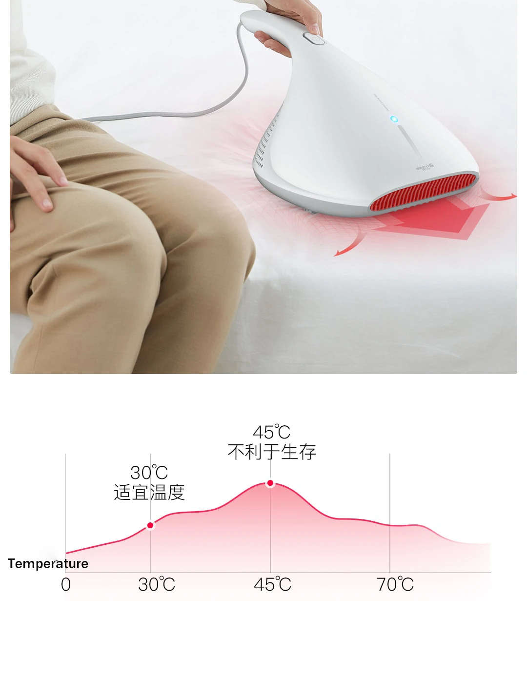 Popular Xiaomi Mijia Deerma Mites Vacuum Cleaner Handheld Light And Heat Shock UV Lamp Remove Mites Strong