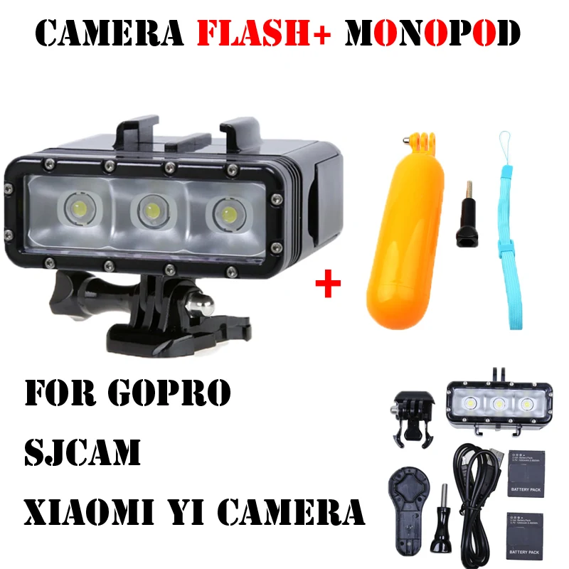 Trend Product new Waterproof Diving LED Light Diving Flashlight LED Lamp + floaty monopod for GoPro Hero 4 3 2 SJ